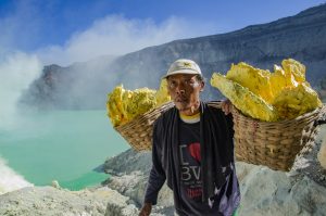 Fenomena ini bisa kamu temukan di Danau Kawah Ijen. Karena sudah sejak lama danau ini terkenal dengan potensi belerang terbesar yang ada di Indonesia. Penambangan ini jadi kegiatan yang berbahaya di Danau Kawah Ijen karena terkadang volume air dan gelombang di danau bisa menyeret para penambang hingga ke tengah danau.