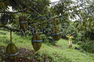 - Foto di bawah pohon durian yang sedang berbuah